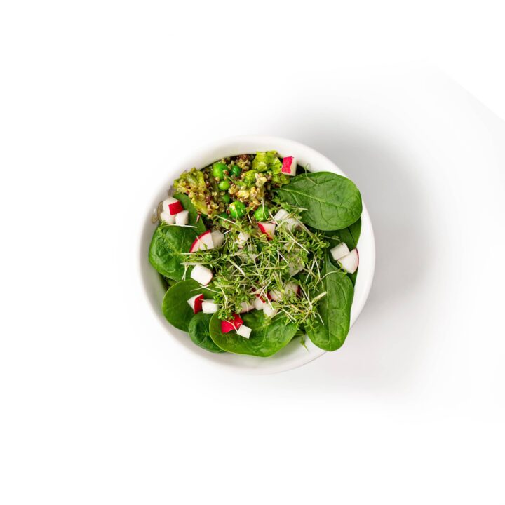 Ein leichter Genuss zur Frühlingszeit ist unser frischer Bio-Quinoasalat mit Bio-Erbsen und Bio-Radieschen. Verfeinert mit Bio-Pesto, Kresse und Blattspinat eine gesunder Snack zur Mittagszeit oder auch als Abendschmausalternative.
